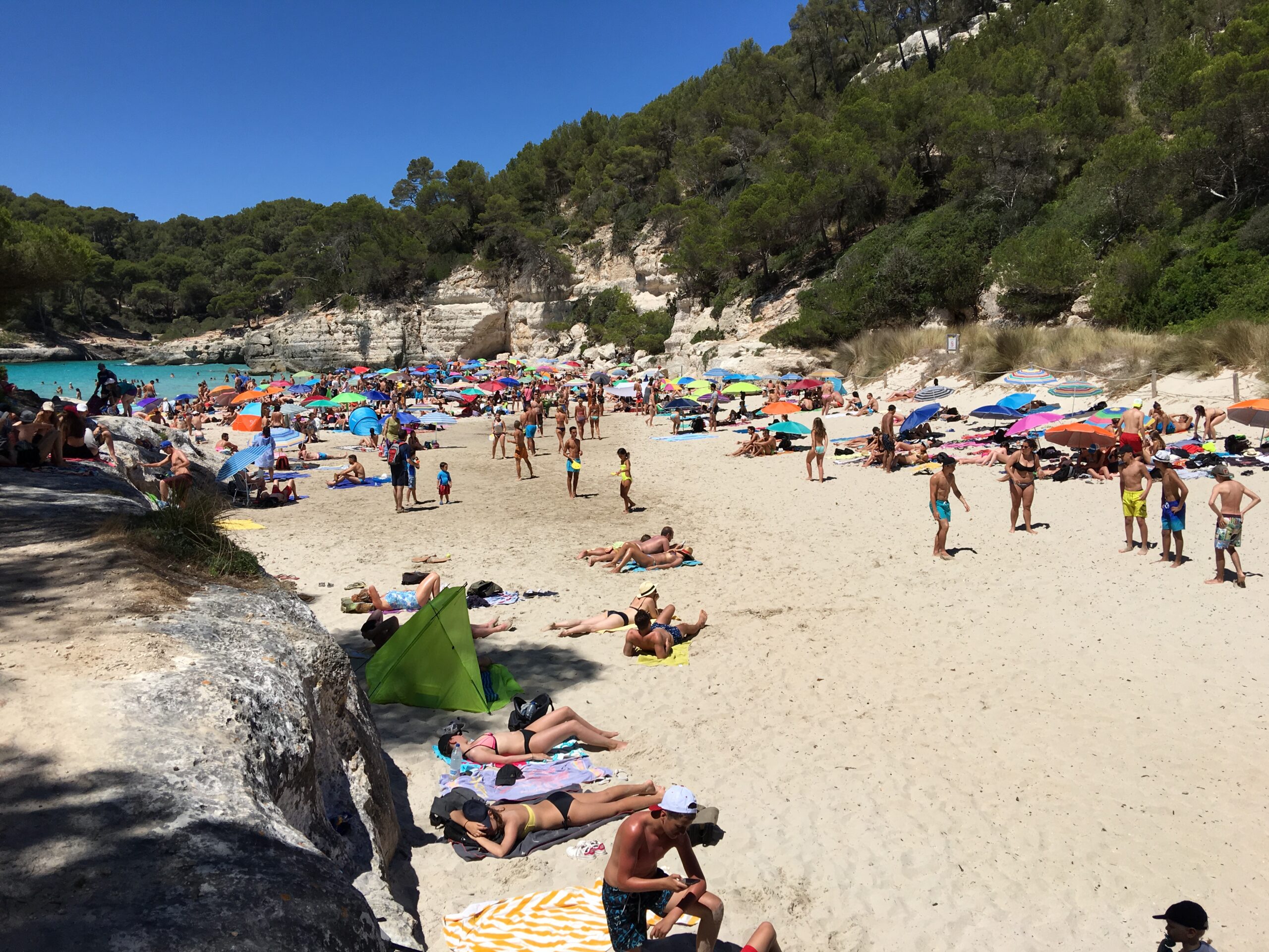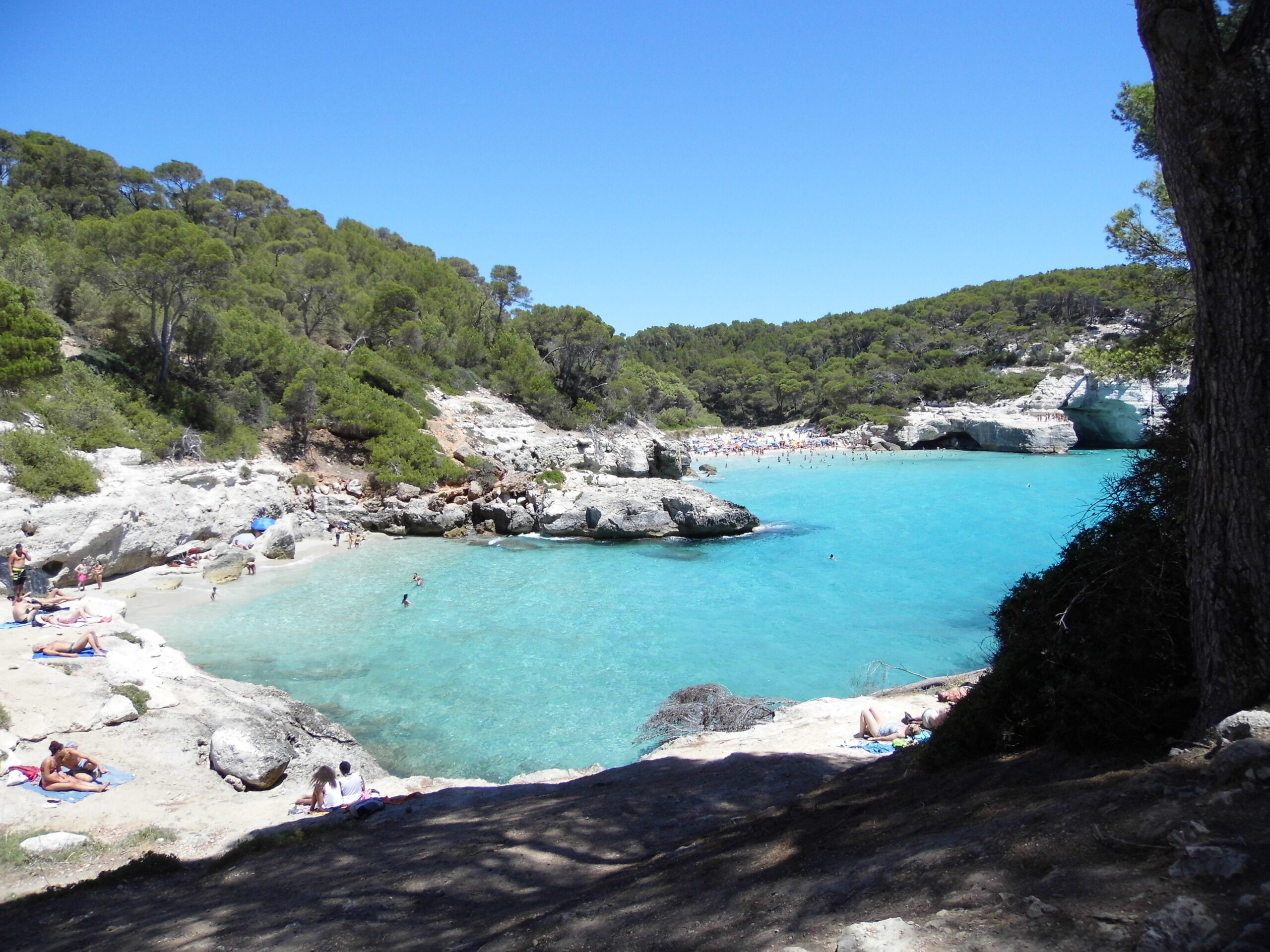 The beach is a good size and stretches a fair way back. Flanked to the wet high cliffs with pine trees. There are no facilities on the beach so go prepared. The nearest resort is Cala Galdana and the walk is approximately 40mins through a pine wood, however there is also a car park towards the rear with a shorter walk of approximately 20mins again through a pine wood.