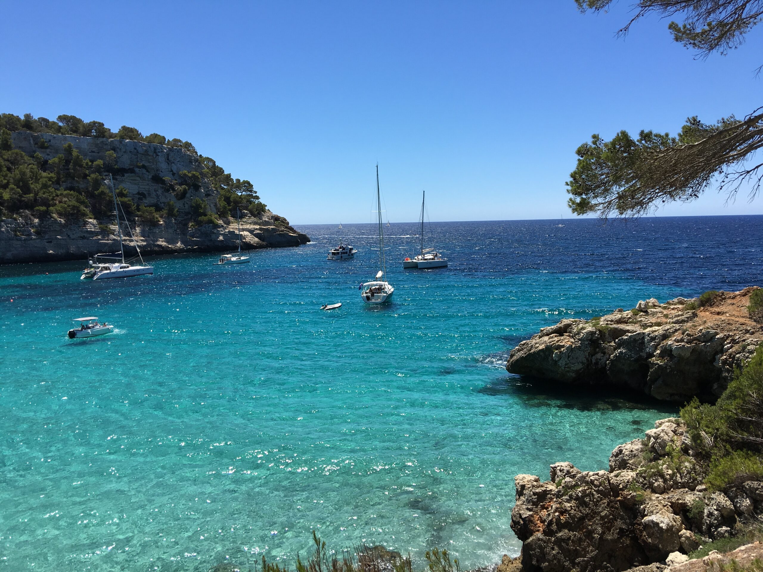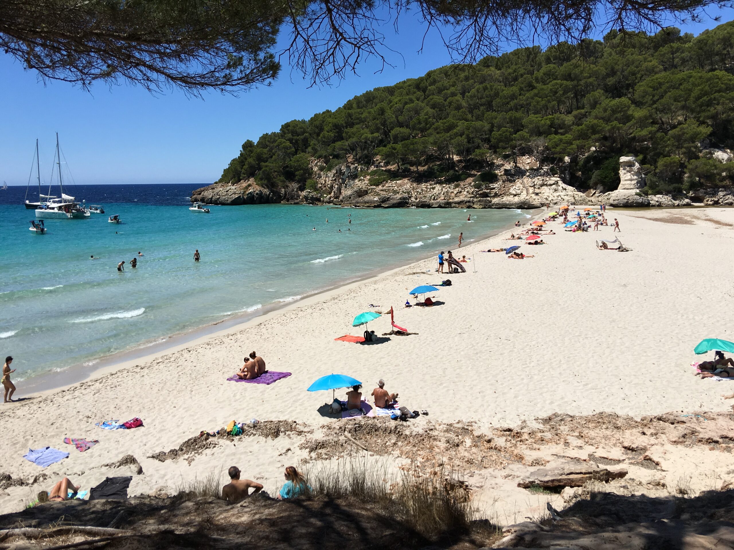 Trebaluger beach is an idyllic paradise, location on the south coast in the Es Migjorn region of Menorca. it’s a medium sized beach with gorgeous soft sand with clear turquoise coloured sea and flanked by hills of sweet smelling pine trees.